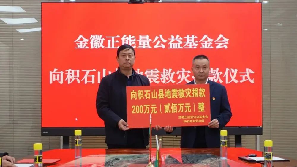 牽動全國人民的“甘肅臨夏積石山縣6.2級地震”發生后,金徽正能量公益基金會率先向甘肅臨夏積石山地震災區捐款200萬元,支持受災地區緊急救援、受災群眾安置和災后恢復重建等工作。由金徽股份參與發起成立的金徽正能量公益基金會,持續聚焦精準扶貧脫貧、為各種災難、貧困學子、貧困群眾、美麗鄉村建設、公益人才培養提供必要援助,為中國公益慈善事業的健康發展做出應有貢獻。2023年,金徽股份向金徽正能量公益基金會捐款800萬元,助力防災減災、愛心助學和鄉村振興等。